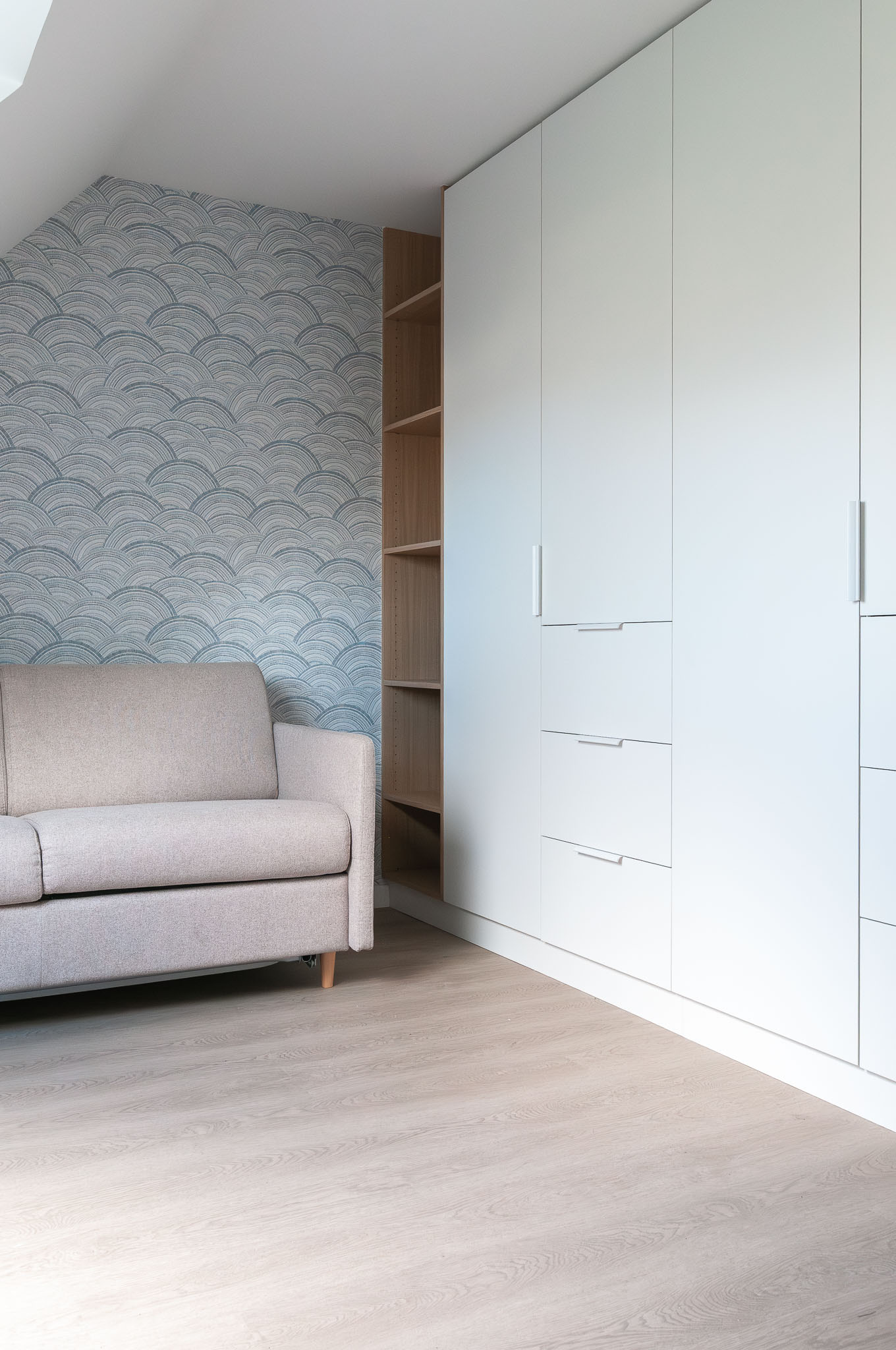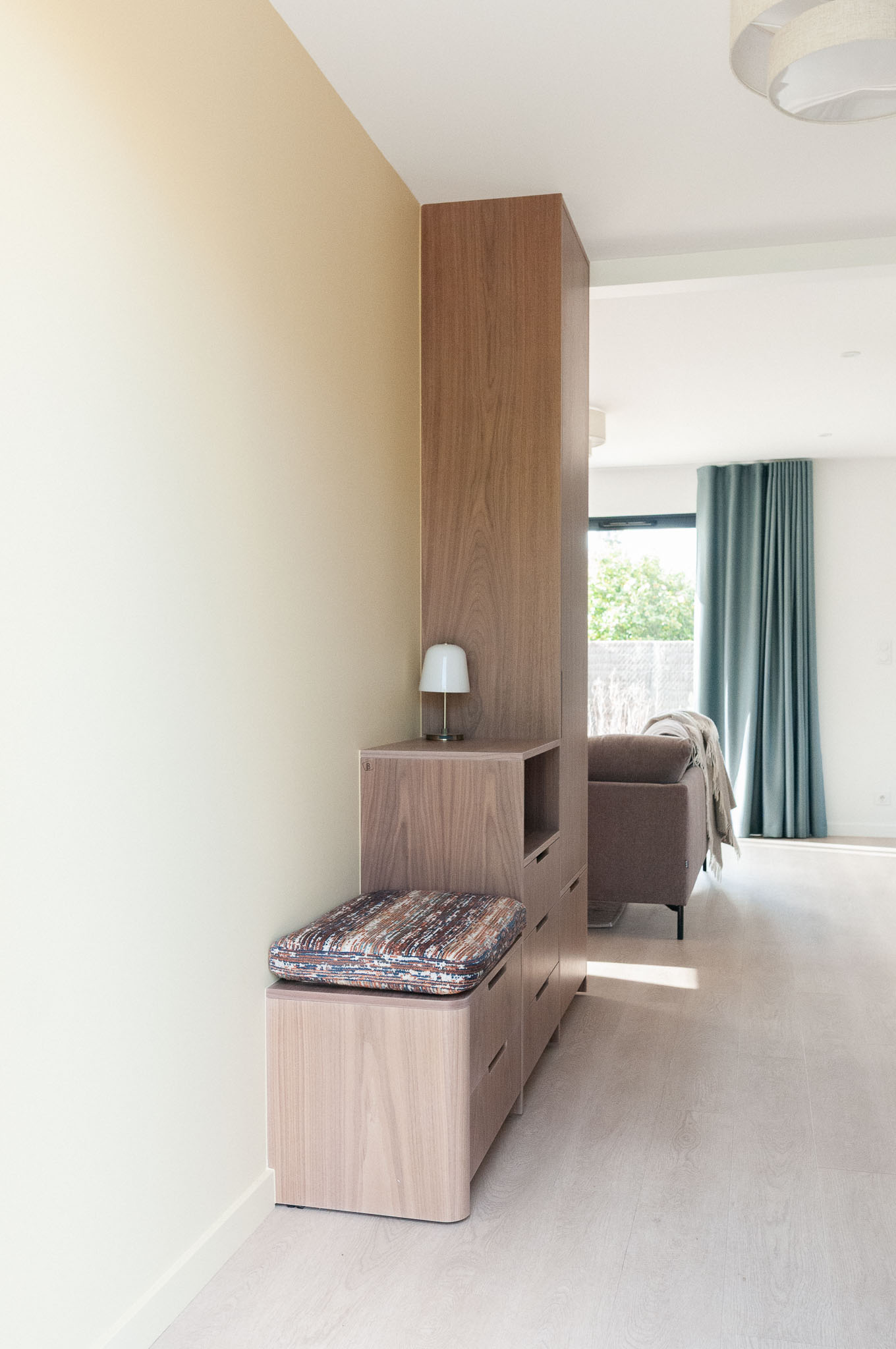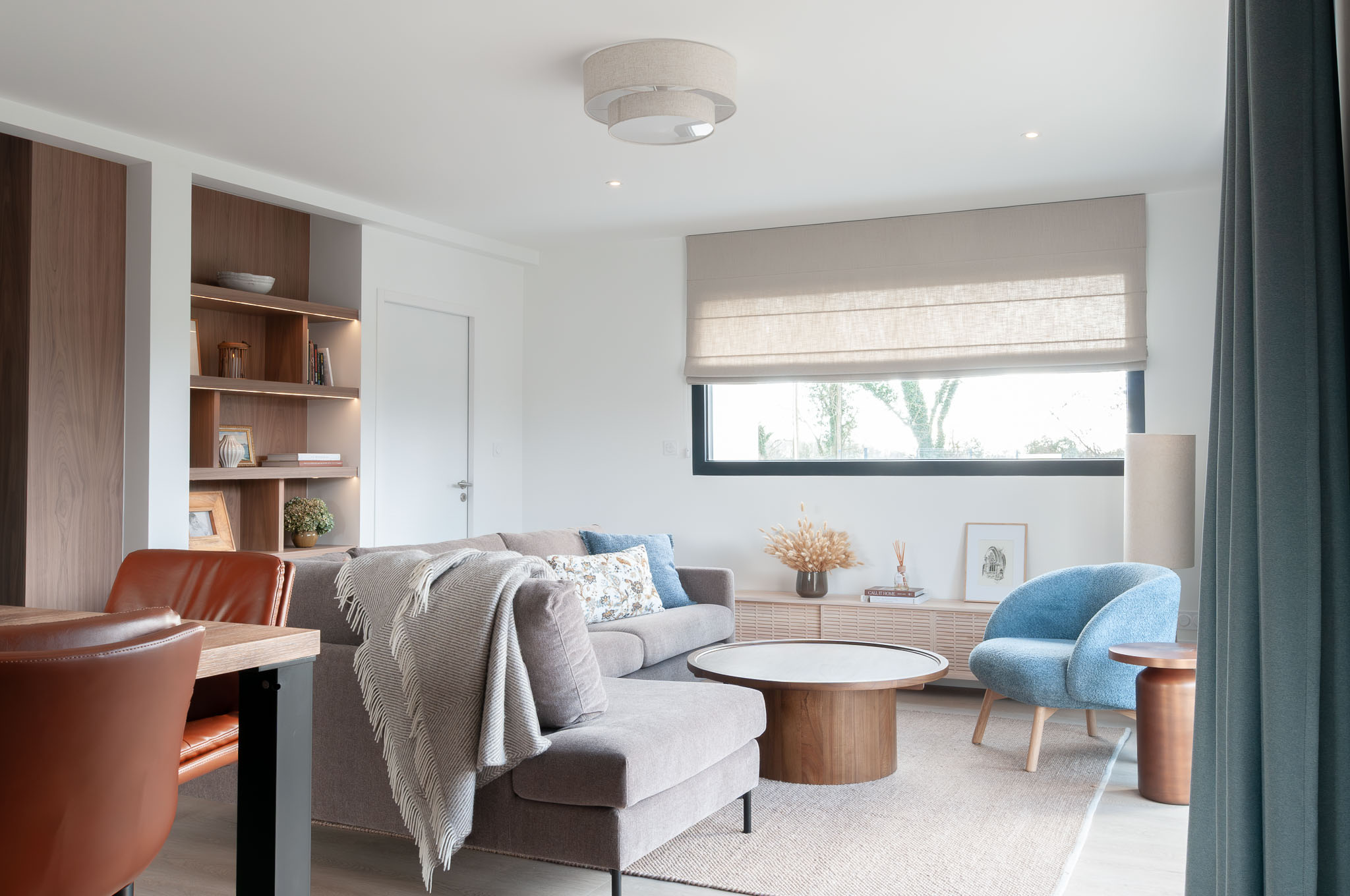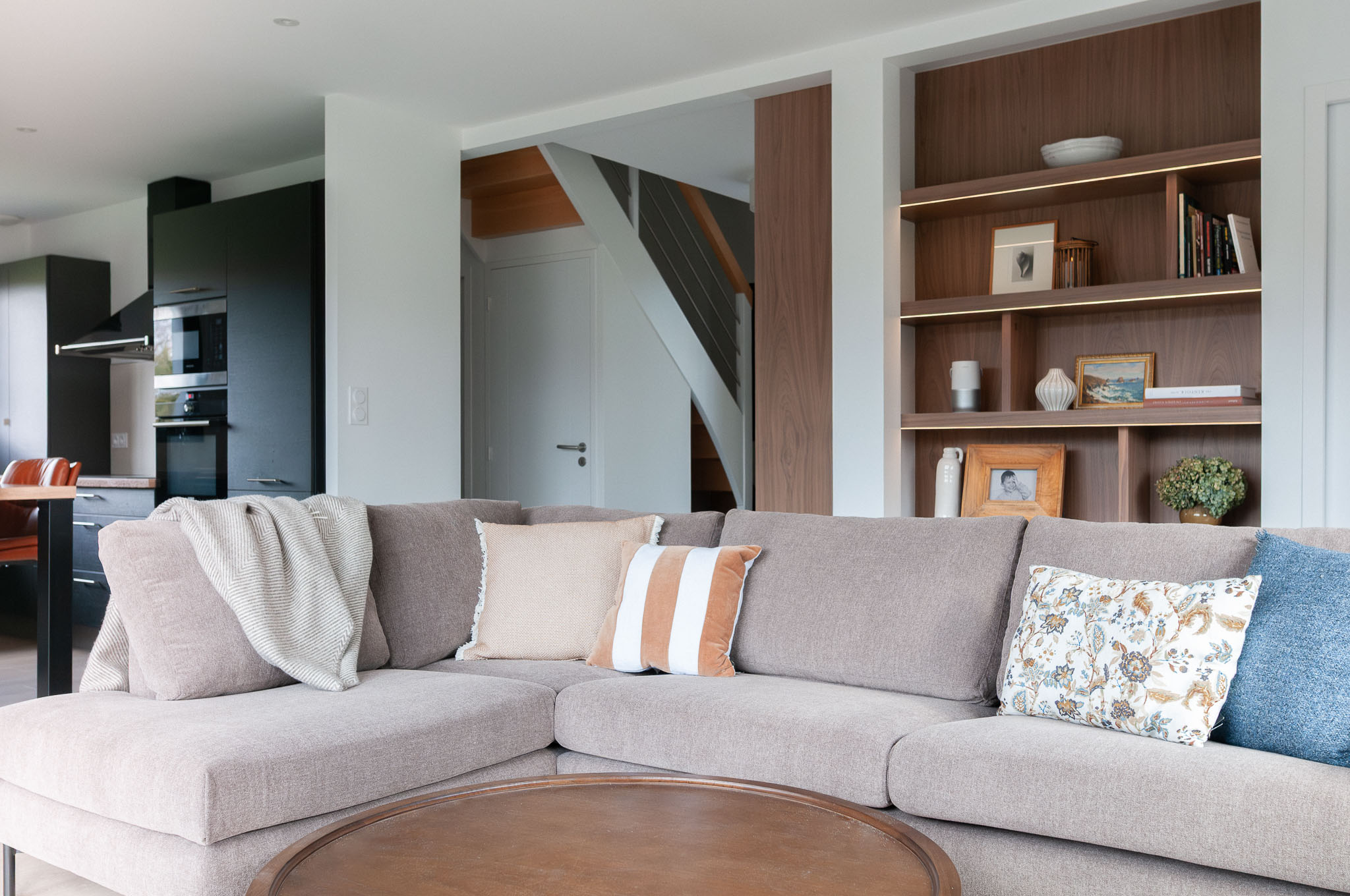Quand mes clients ont acheté cette maison récente pour venir y profiter bientôt d’une retraite bien méritée, ils ont craqué pour les volumes, l’emplacement au calme et le beau terrain pour leur futur chien. Mais l’état général de cette maison pourtant récente méritait d’être revu. L’ensemble de la maison a donc été rénovée, du sol au plafond. Une réflexion approfondie a été menée sur les agencements sur-mesure afin d’exploiter au maximum le potentiel des lieux, à la fois en termes de rangements et pour leur apporter une personnalité unique. Les couleurs et les textures ont également été soigneusement pensées pour mettre en valeur la singularité de chaque espace tout en préservant une vraie harmonie d’ensemble. Le mobilier a été choisi pour être le plus cosy possible et les tons et textures créent un esprit bord de mer élégant.