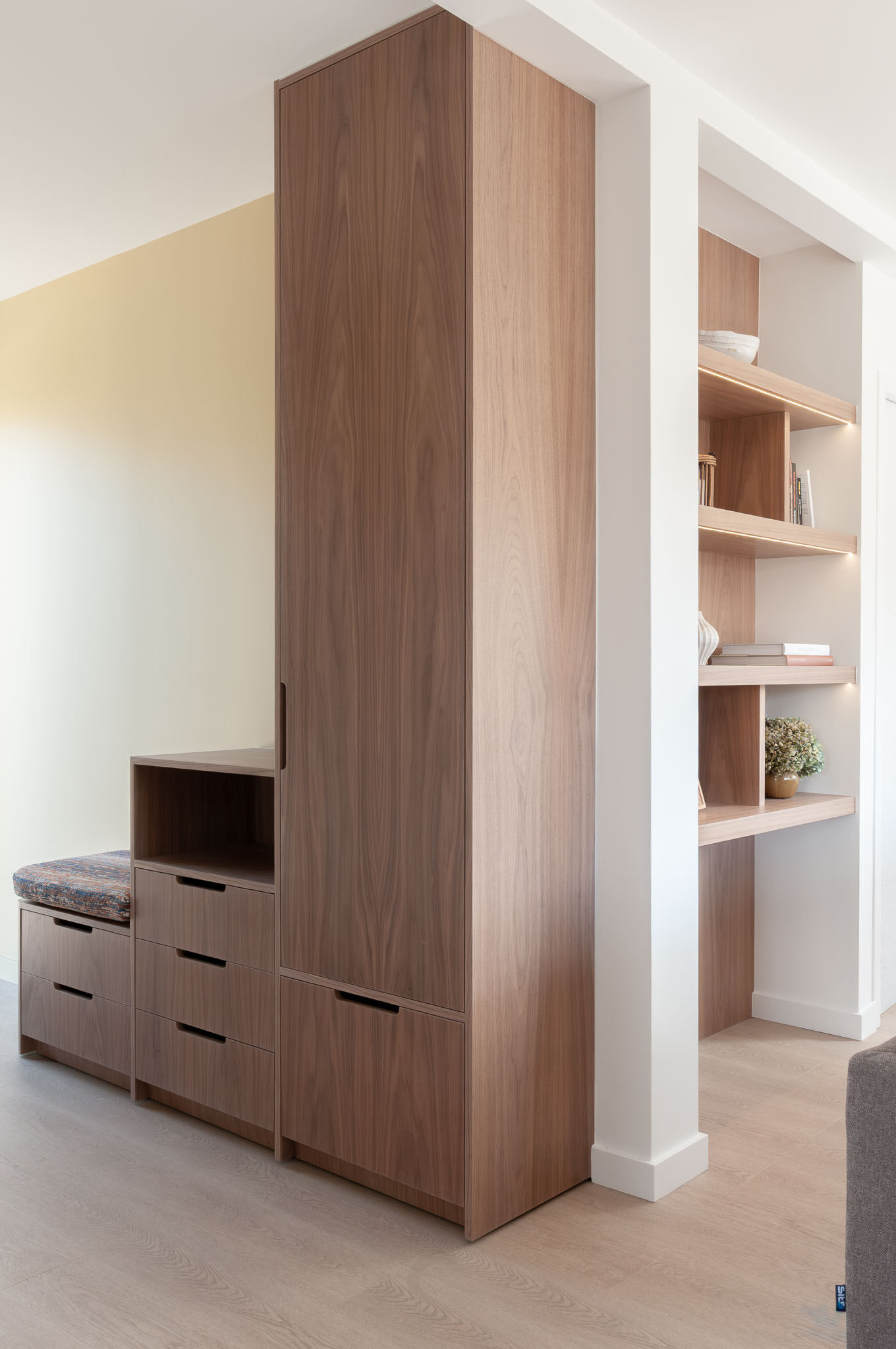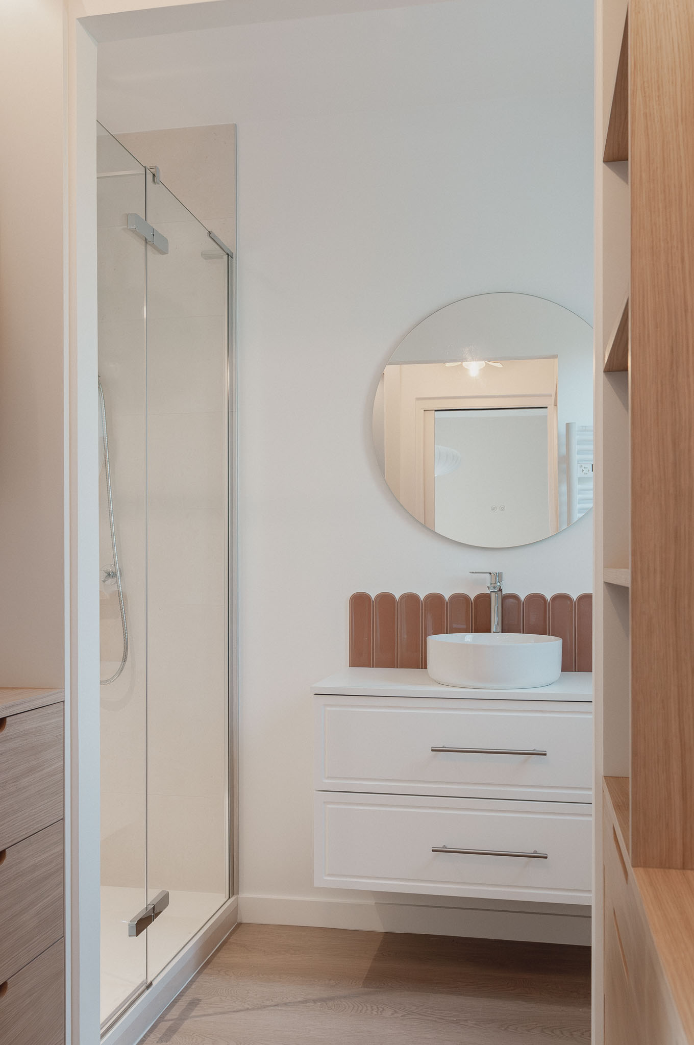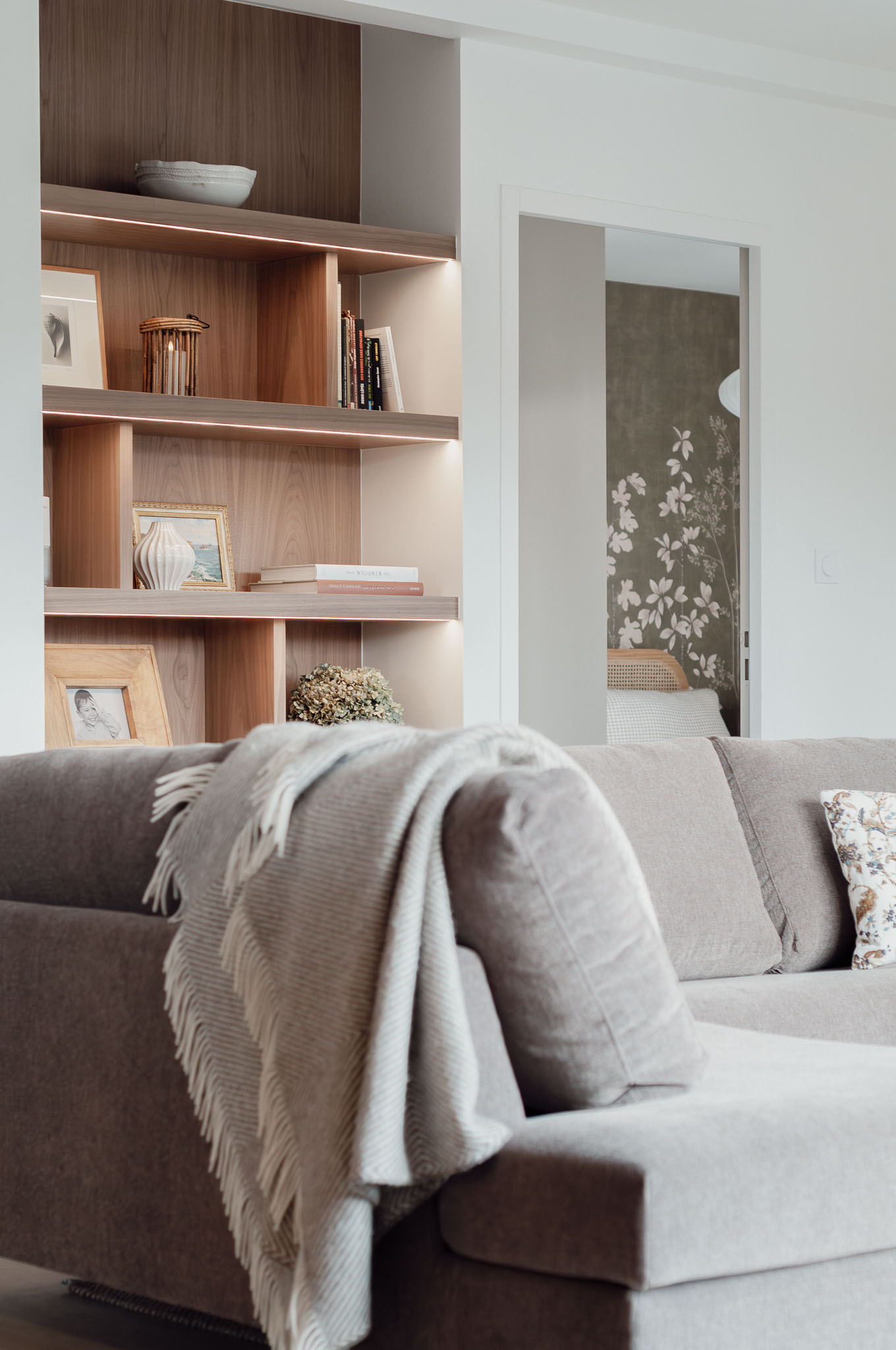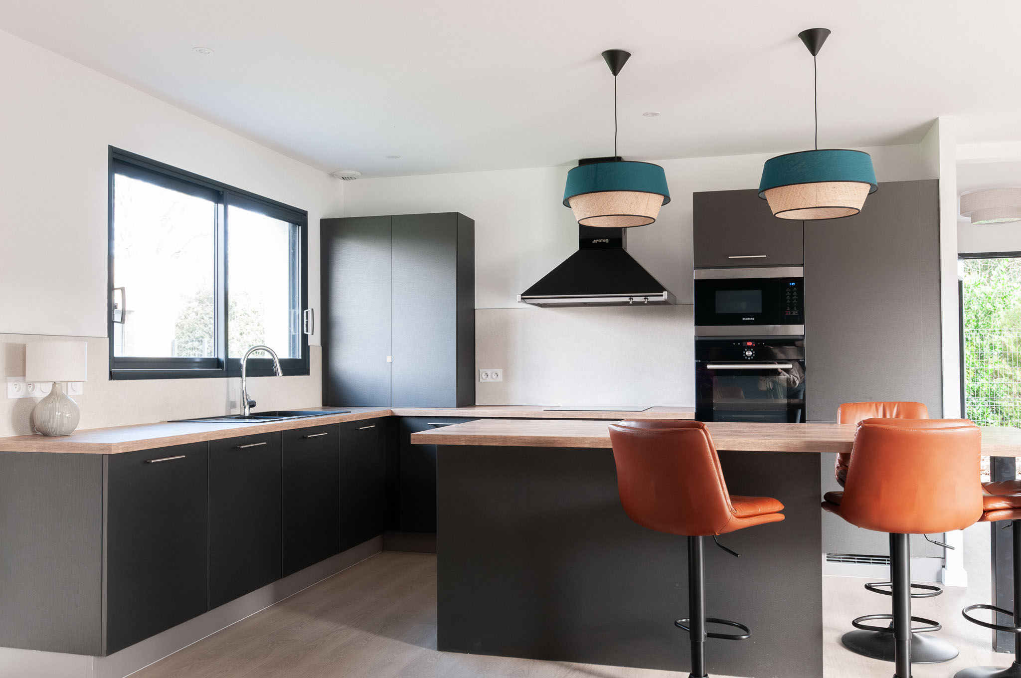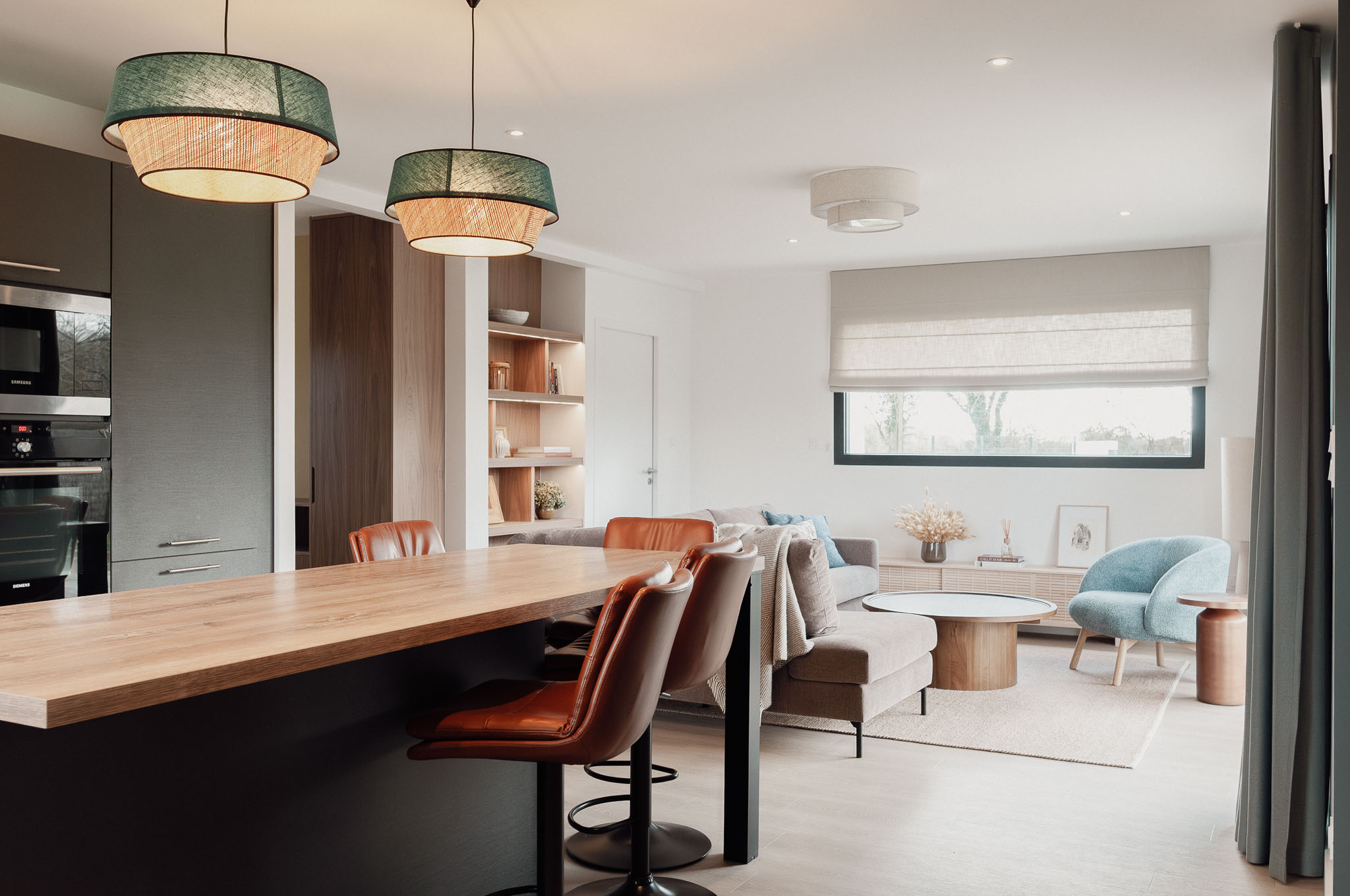 Quand mes clients ont acheté cette maison récente pour venir y profiter bientôt d’une retraite bien méritée, ils ont craqué pour les volumes, l’emplacement au calme et le beau terrain pour leur futur chien. Mais l’état général de cette maison pourtant récente méritait d’être revu. L’ensemble de la maison a donc été rénovée, du sol au plafond. Une réflexion approfondie a été menée sur les agencements sur-mesure afin d’exploiter au maximum le potentiel des lieux, à la fois en termes de rangements et pour leur apporter une personnalité unique. Les couleurs et les textures ont également été soigneusement pensées pour mettre en valeur la singularité de chaque espace tout en préservant une vraie harmonie d’ensemble. Le mobilier a été choisi pour être le plus cosy possible et les tons et textures créent un esprit bord de mer élégant.